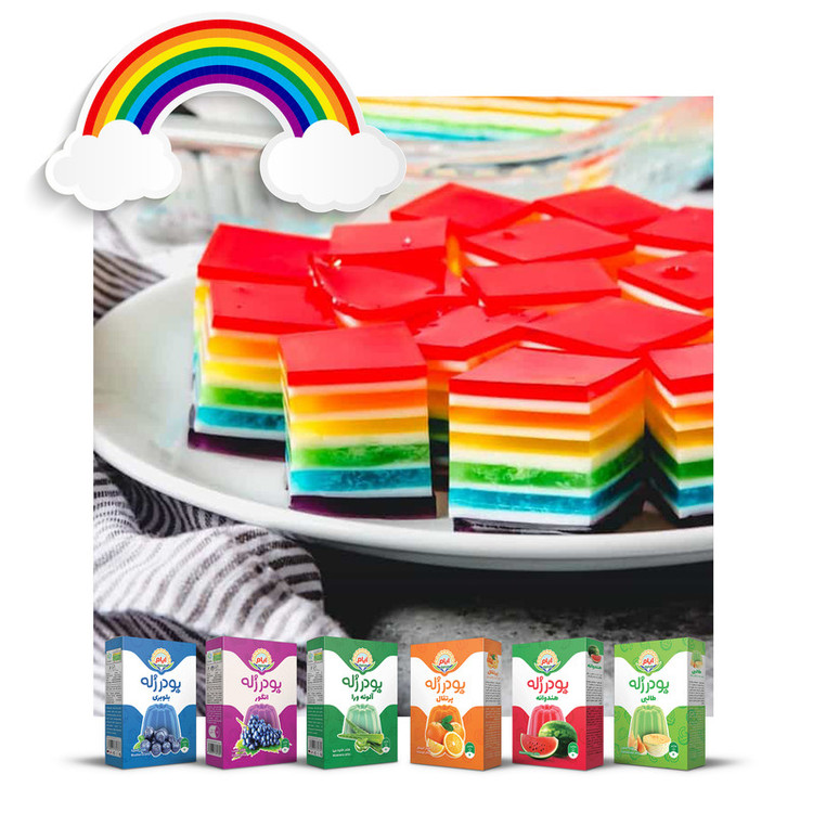 پودر ژله‌های رنگین کمان ایام - 90 گرم مجموعه 6 عددی